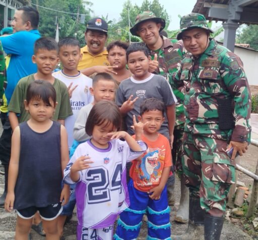 BREBES | 21 Februari 2026 – Momen hangat dan penuh semangat menghiasi pelaksanaan Program TNI Manunggal Membangun Desa (TMMD) Reguler Ke-127 Kodim 0713 Brebes di Desa Cikuya, Kecamatan Banjarharjo. Sertu Solekudin, anggota Satgas yang terlibat dalam pekerjaan rehabilitasi Rumah Tidak Layak Huni (RTLH), ditemukan dikelilingi oleh puluhan anak-anak desa yang antusias ingin berfoto bersama dan bertanya seputar kehidupan sebagai prajurit.