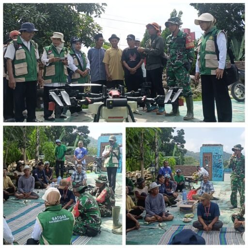 BREBES | – Dalam rangka mendukung program ketahanan pangan dan pertanian berkelanjutan, Satgas TMMD Ke-127 Tahun 2026 bersama Dinas Peternakan dan Kesehatan Hewan Kabupaten Brebes serta Balai Penyuluh Pertanian (BPP) Banjarharjo menggelar sosialisasi serta bimbingan teknis pemanfaatan kotoran ternak menjadi pupuk organik dan pengenalan Drone Pertanian kepada kelompok tani (Poktan) di Desa Cikuya, Kecamatan Banjarharjo, Kabupaten Brebes. Rabu(11/2/2026)