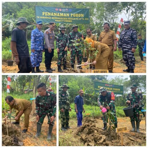 BREBES | – Dalam rangka mendukung pelestarian lingkungan hidup, Satgas TNI Manunggal Membangun Desa (TMMD) ke-127 melaksanakan kegiatan penanaman pohon di sekitar lokasi sasaran TMMD, Desa Cikuya, Kecamatan Banjarharjo, Kabupaten Brebes, Rabu(11/2/2026).